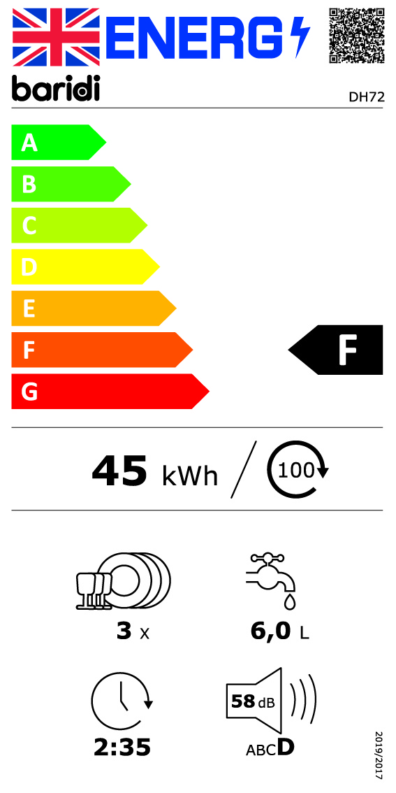 • MULTI-FUNCTION - Seven programmed wash cycles; Hygiene72°/Intensive/ECO/Glass/58min Wash/Rapid/Self-Cleaning as well as featuring a 1-24hr delayed start.